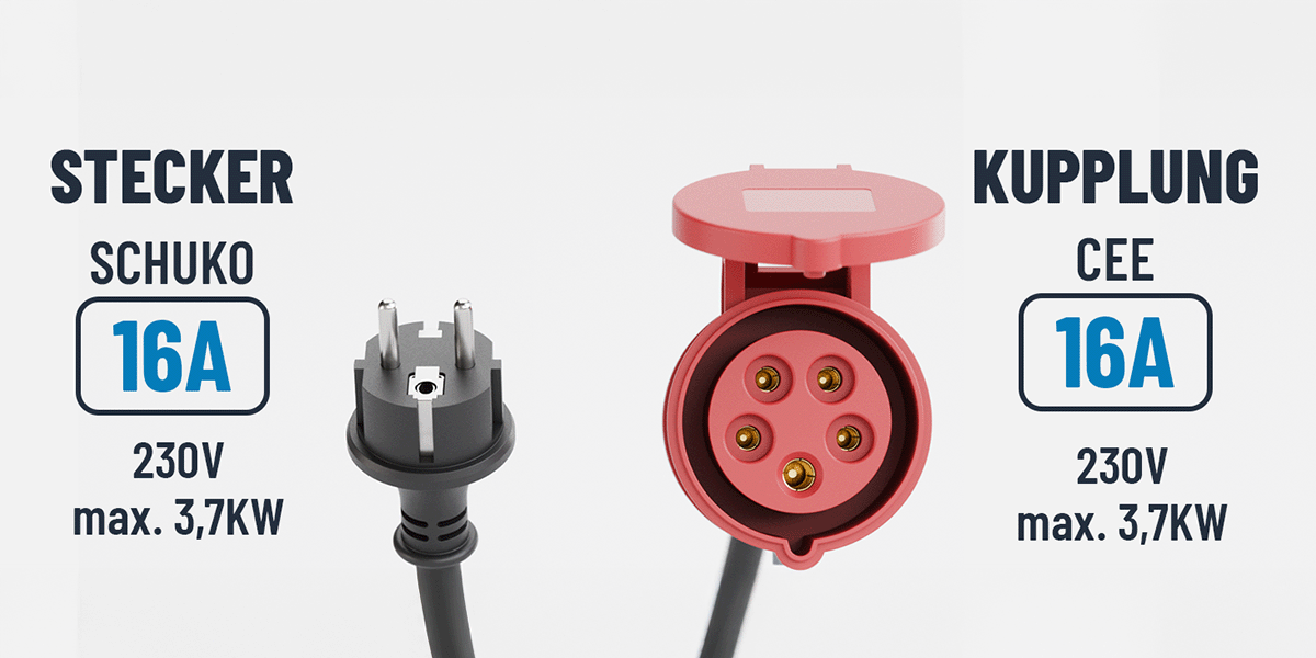 - Adapter Schuko - Der Adapter Schuko 16A auf CEE gewährleistet eine sichere & zuverlässige Stromübertragung - Ideal als Adapter für Elektroauto Ladegeräte.