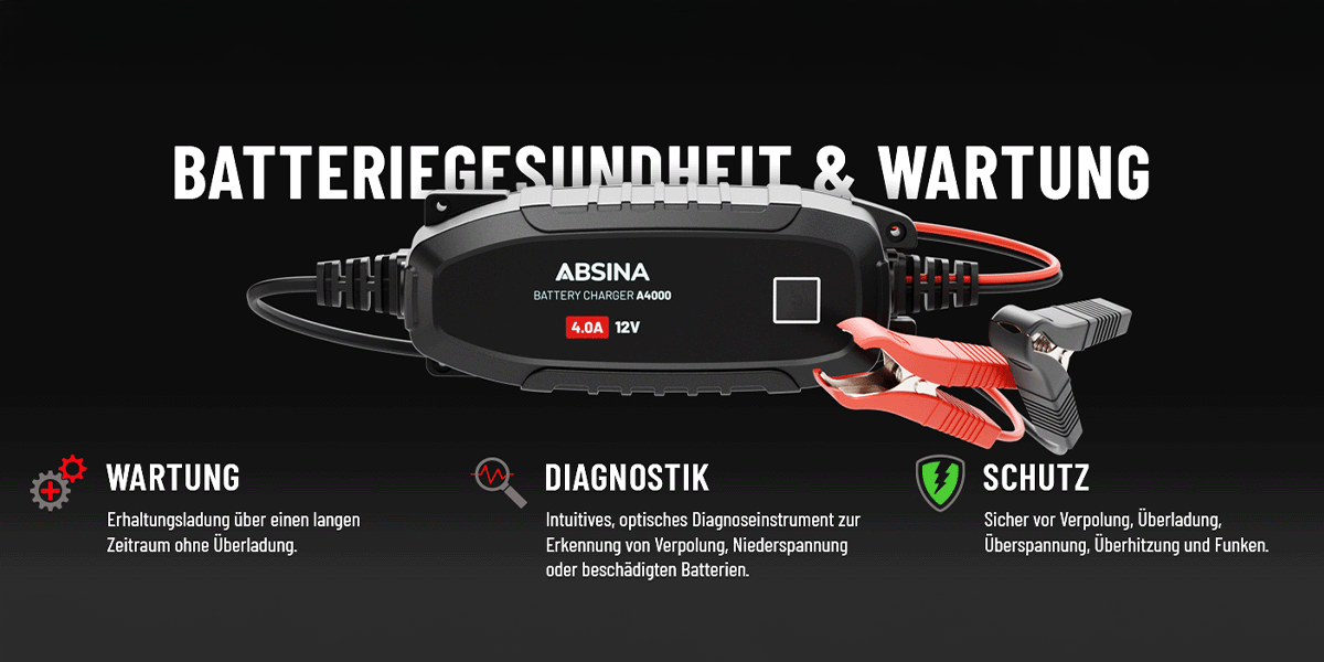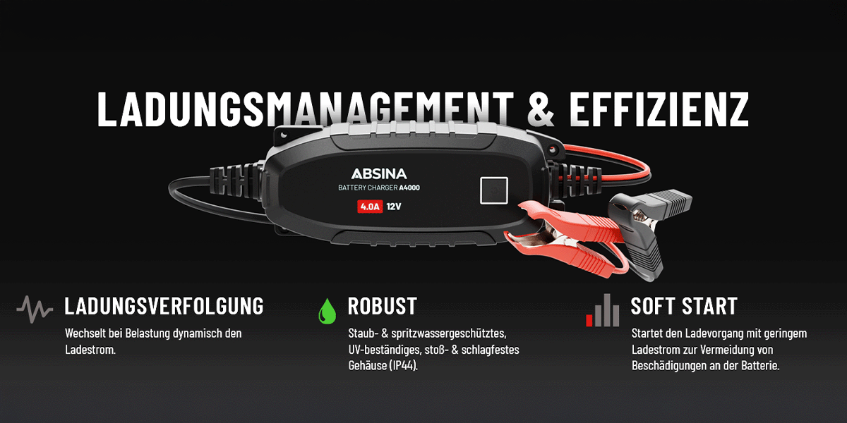 - Vollautomatisch - Intelligentes 8-Stufen-Ladegerät reaktiviert tiefentladene Batterien und schaltet bei Vollladung auf Erhaltungsladung um.