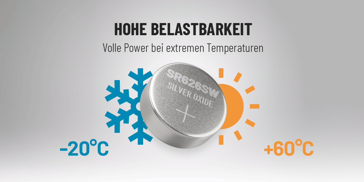 - Robust und vielseitig – SR 626 SW Knopfzelle ist temperaturbeständig von -20°C bis +60°C und ideal für extreme Bedingungen.
