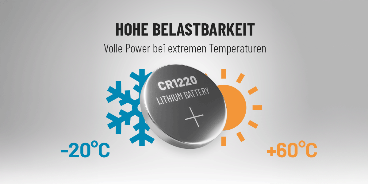 - Zuverlässig und robust – 3V CR1220 Batterie ist temperaturbeständig von -20°C bis +60°C, ideal für extreme Bedingungen.